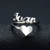 Personalize Your Name & Heart Silver Ring